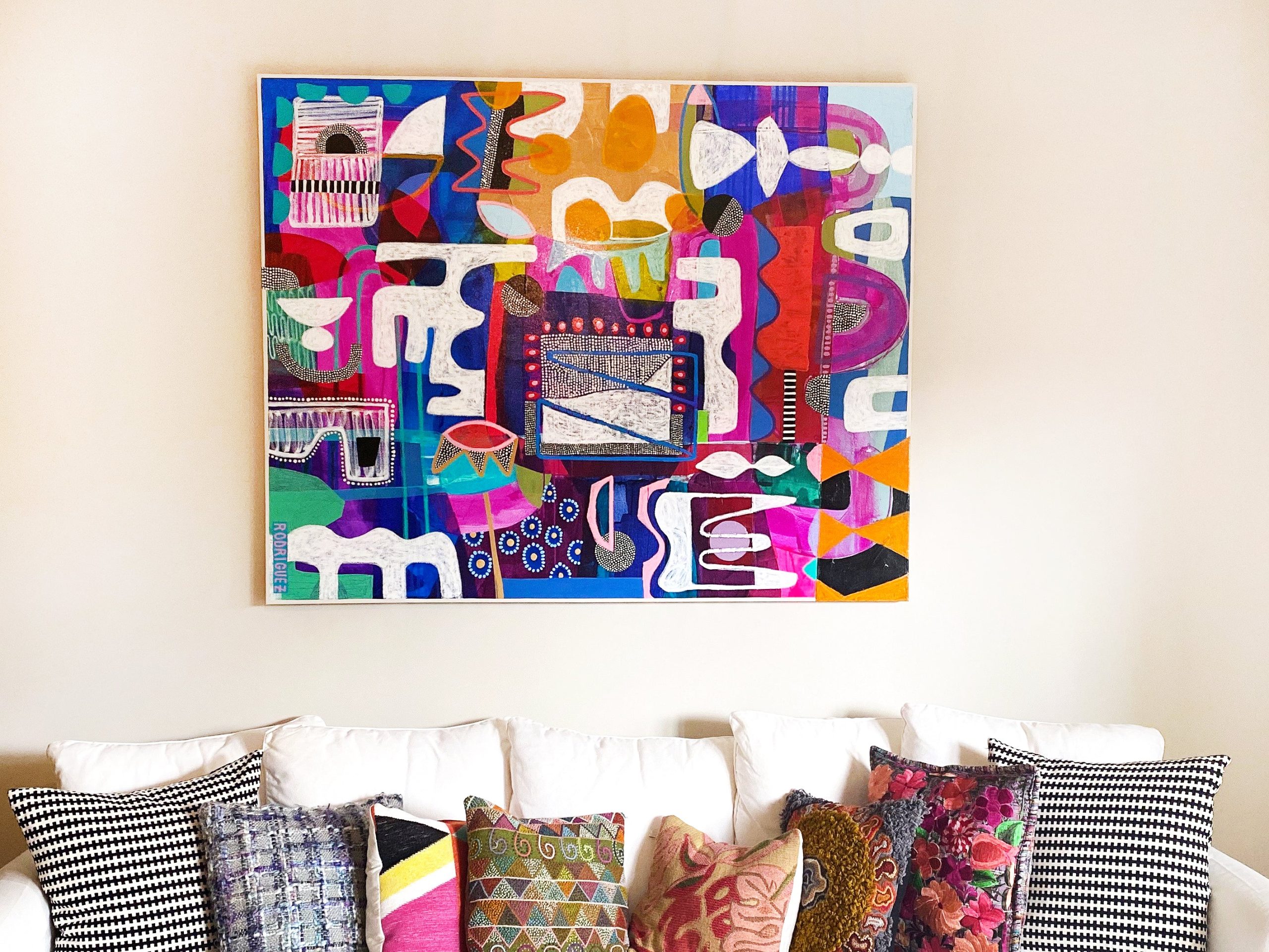 Filipino-American artist Marianne Angeli Rodriguez is an abstract contemporary painter based in Covington, Louisiana. Due to her parents’ work with the United Nations, Marianne spent 15 years living abroad in West Africa, Central America, Europe & Asia before landing in the US. Marianne went on to study in New York where she obtained a B.A. in media studies & anthropology from the City University of New York at Hunter College, and a degree in fashion design from FIT.